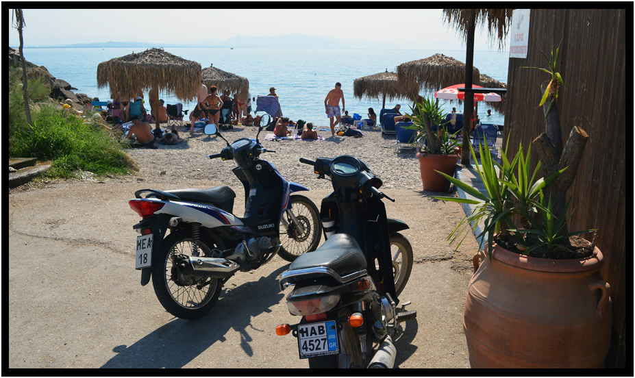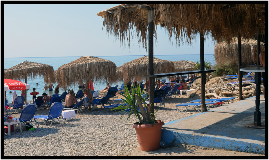 Beach scene at the west end of town, Katakolon, Greece, 2013.