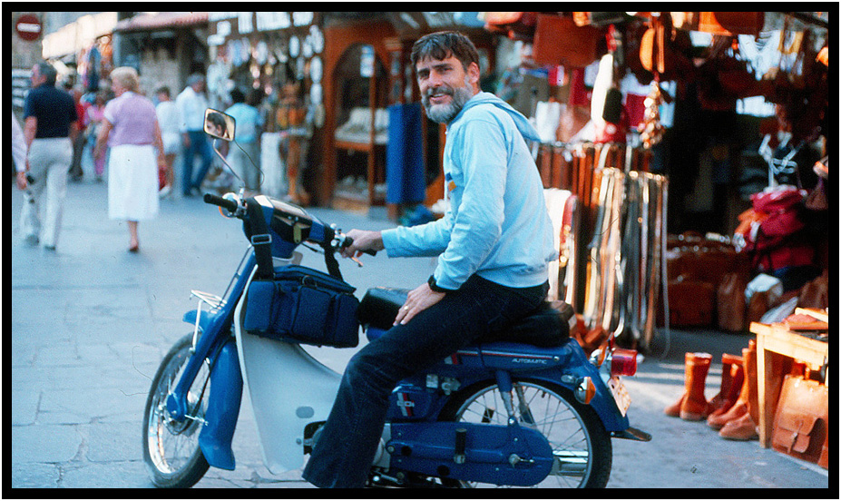 Me on the other motorcycles we rented, Rhodes, Greece, 1984.