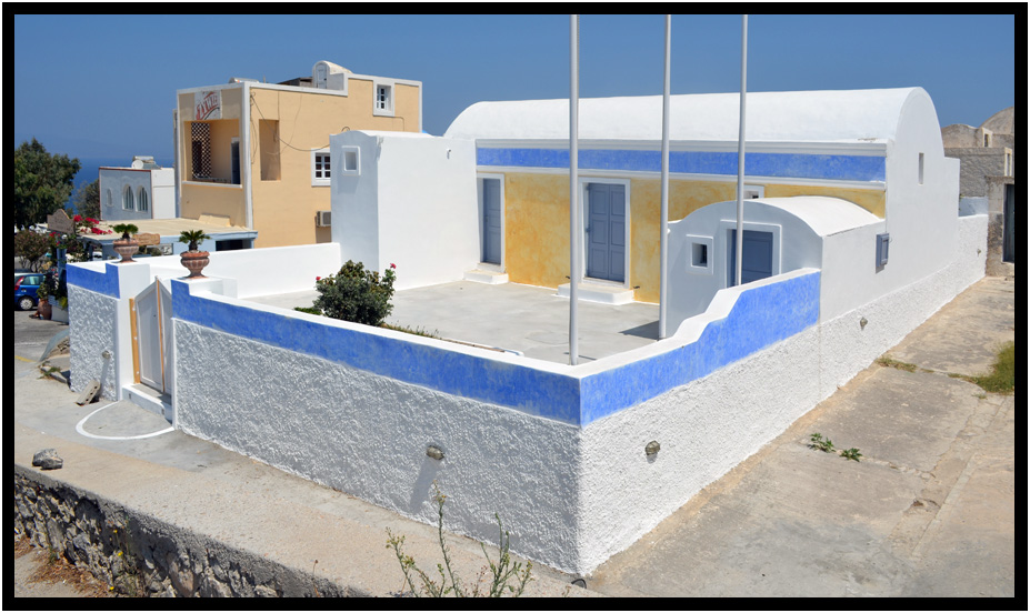 Some newer structures, usually not in the popular old cliffside neighborhoods, stick to the basics, Oia, Santorini, Greece, 2013.
