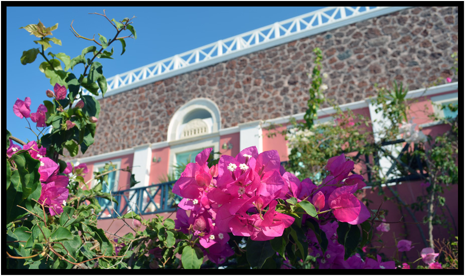 More beauty in flowers accent this stone structure, Oia, Santorini, Greece, 2013.