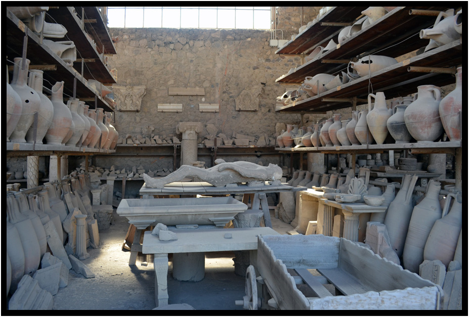 A third collection of items found by archeologists, Pompeii, Campania, Italy, 2013.