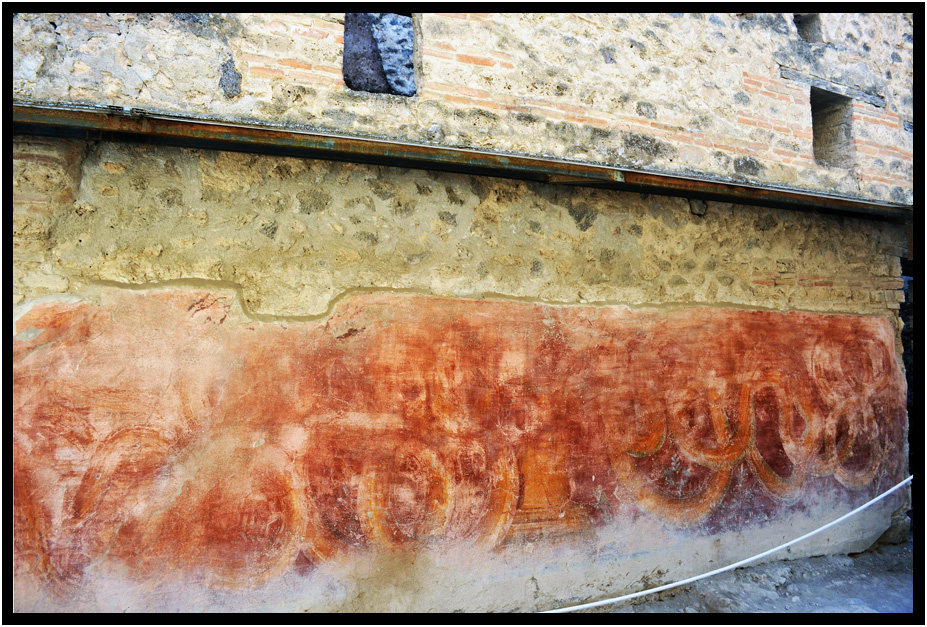 Wall fresco of a snake, Pompeii, Campania, Italy, 2013.