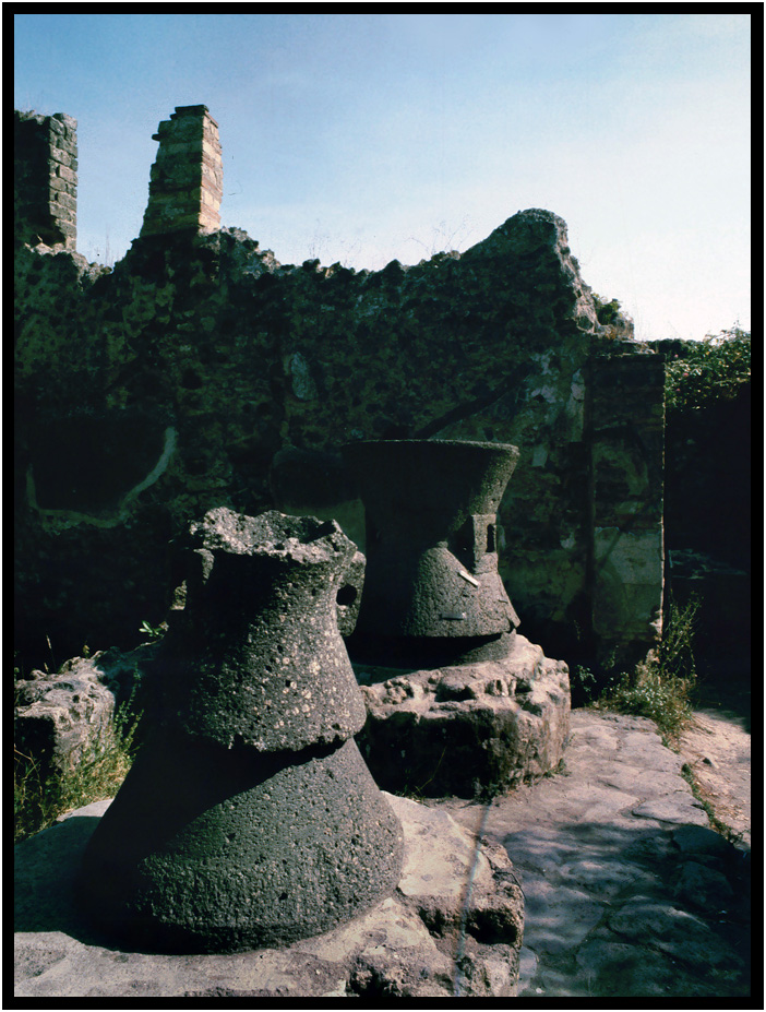 Bakery grinding stones, Pompeii, Campania, Italy, 1978.