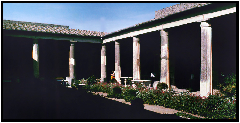 The courtyard of the House of the Vetti, two successful freedmen, Aulus Vettius Conviva and Aulus Vettius Restitutus, Pompeii, Campania, Italy, 1978.