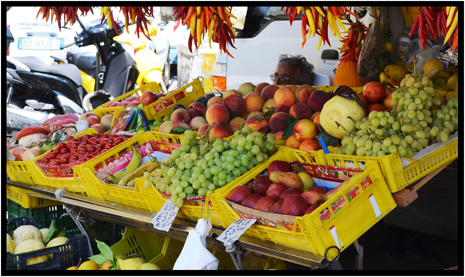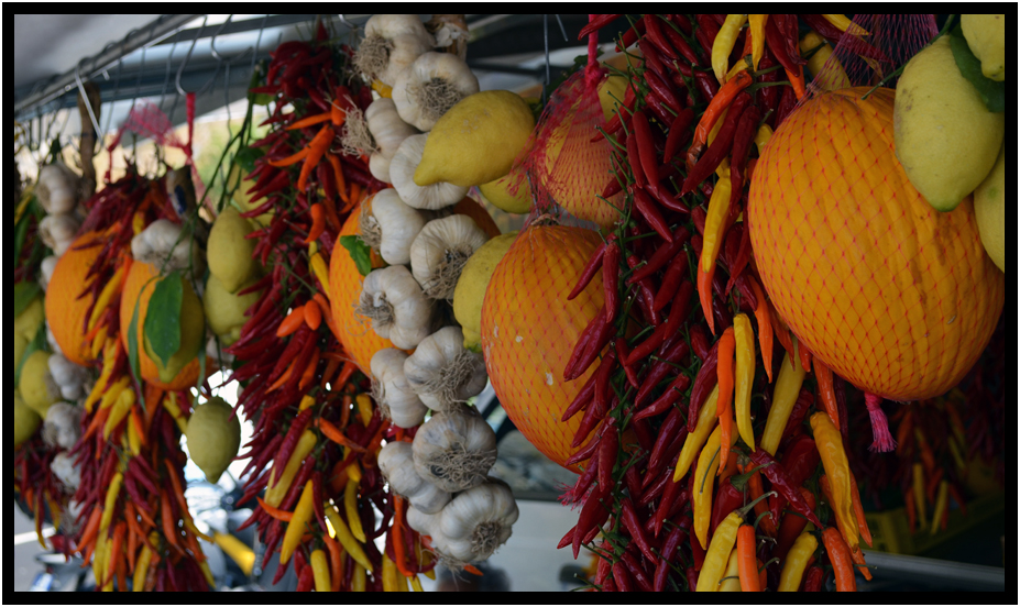 Colorful peppers for sale, Positano, Campania, Italy, 2013.