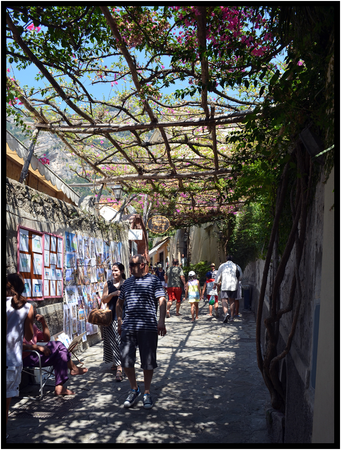 Street gallery under a shaded arbor, Positano, Campania, Italy, 2013.