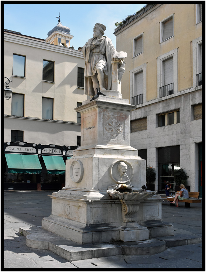 Monument al Parmigianino in the small plaza next to Basilica Santa Maria della Steccata, Parma, Emilia-Romagna, Italy, 2017.