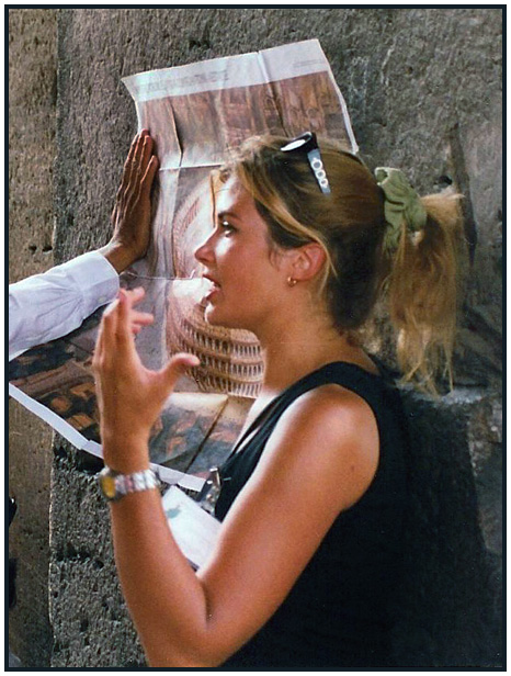 Our pretty young college student guide, Colosseum, Rome, Lazio, Italy, 1999.