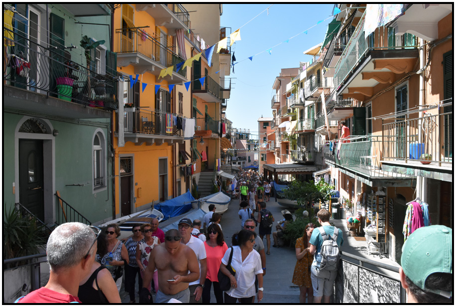 Via Antonio Discovolol, the main street above the platform, Manarola, Cinque Terre, Liguria, Italy, 2017.