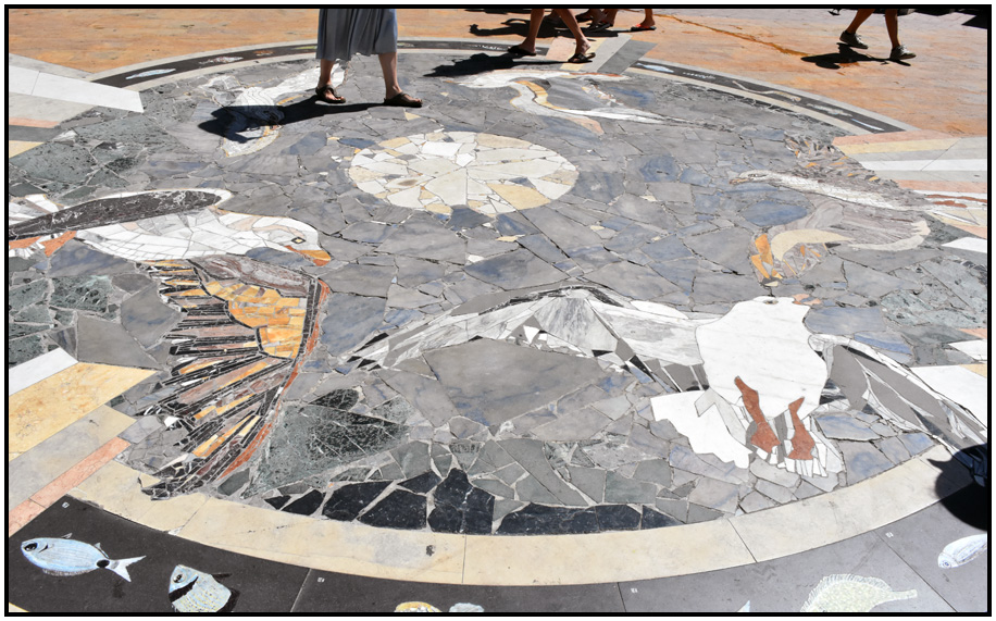 This beautiful mosaic is also set into the platform, Manarola, Cinque Terre, Liguria, Italy, 2017.