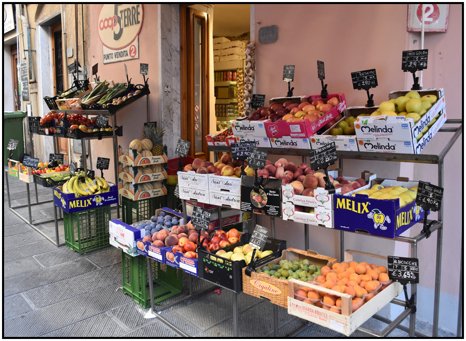 Fresh fruit, Riomaggiore, Cinque Terre, Liguria, Italy, 2017.