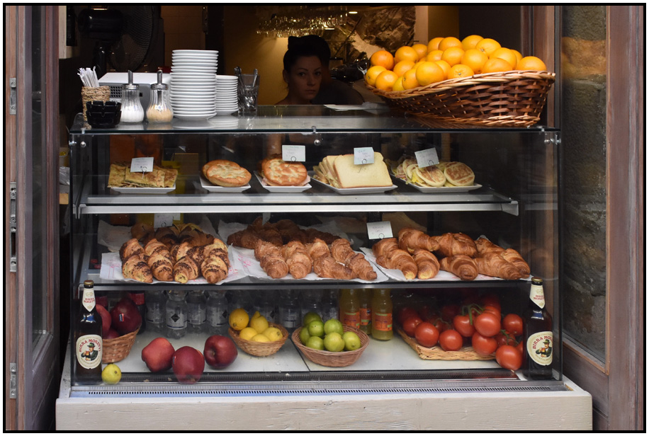 Food offerings, Riomaggiore, Cinque Terre, Liguria, Italy, 2017.
