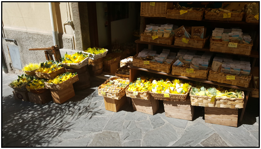 This store specialized in the Cinque Terre's famous lemon products, Riomaggiore, Cinque Terre, Liguria, Italy, 2017.