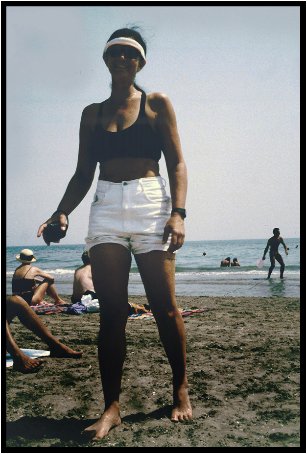 Friend Rose and I braving the beach, Lido Isle, Veneto, Italy, 1994.