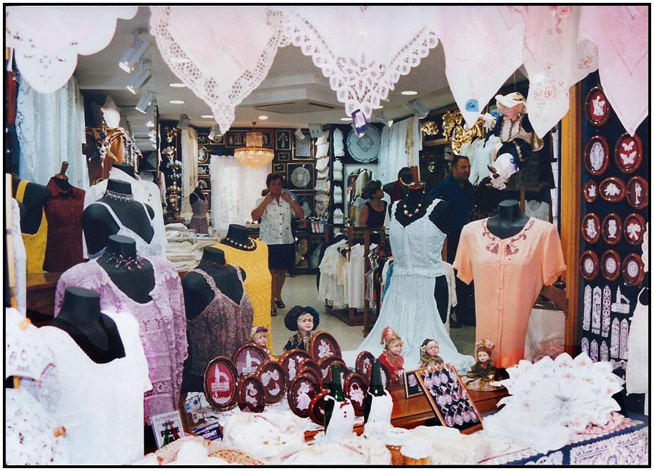 Interior of a lace shop, Burano, Veneto, Italy, 1999.