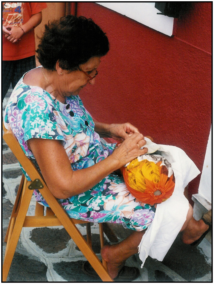 Local woman making lace, Burano, Veneto, Italy, 1999.