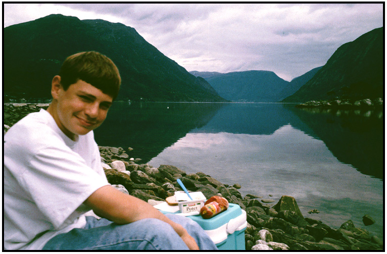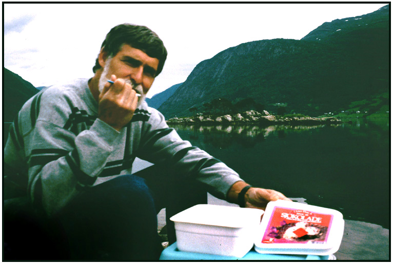 Finishing a gallon of ice cream was not easy, Dale, Norway, 1994.