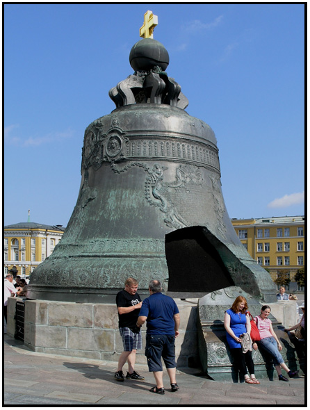 (Left) The 216 ton Tzar Bell commissioned by Empress Anna, niece of Peter the Great, from bronze master Ivan Motorin in 1733, which broke in the mold.