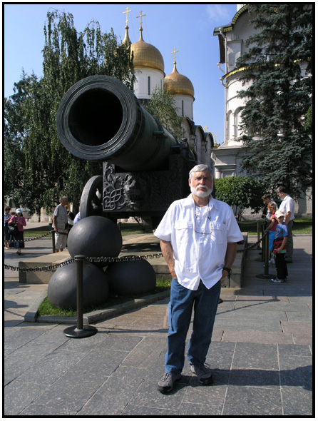 (Right) The huge bore Tzar Cannon (no, the black one on the left), Kremlin, Moscow, Russia, 2009.