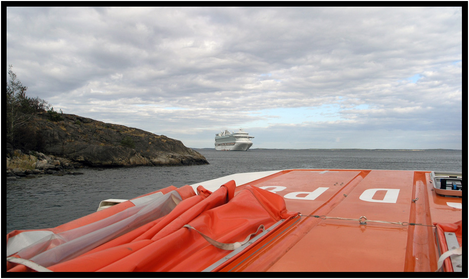 Tenders docking at the Emerald Princess, Nynashamn, Sweden, 2009.