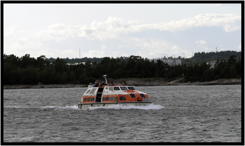 Riding the Emerald Princess tender into Nynashamn, Sweden, 2009.