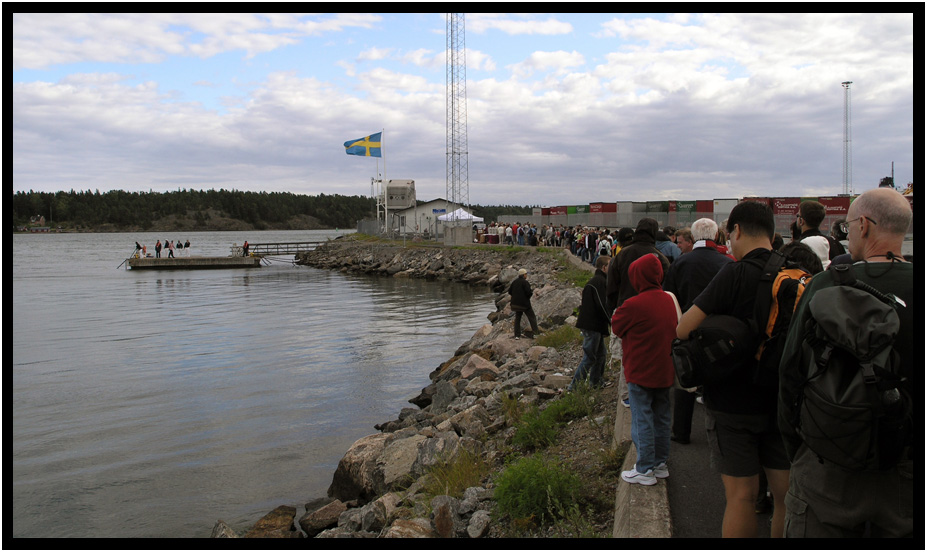 Long line waiting for the cruise ship tenders, Nynashamn, Sweden, 2009.