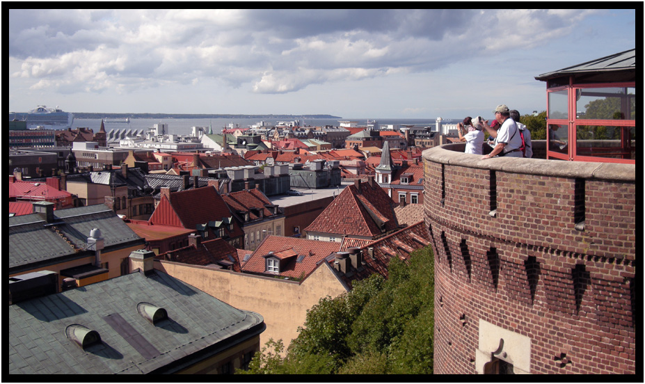 View over the city and sound toward Denmark from the Karnan, Helsingborg, Sweden, 2009.