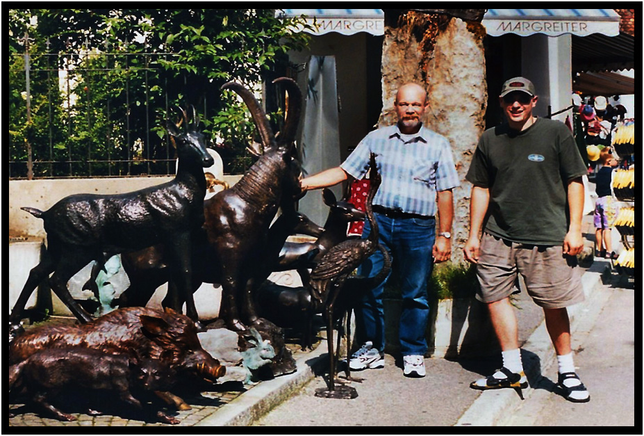 Wyatt and Larry enjoy a cup of coffee, Appenzell, Switzerland, 1999.