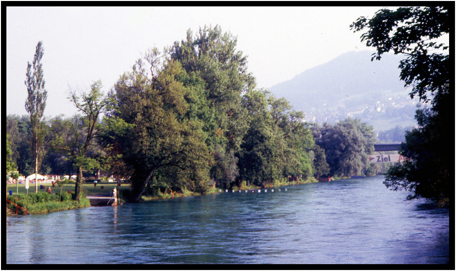 Son, Ryan, and niece, Angela, swimming in the Aare, Marzilibad, Bern, Switzerland, 1991.