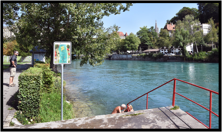 One of the entry/exit points for swim/floating the Aare River, Marzilibad, Bern, Switzerland, 2017.