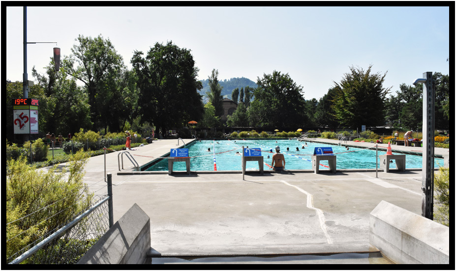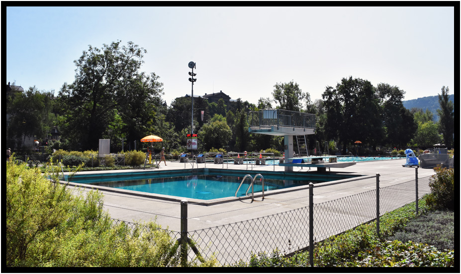 Large swimming pool next to diving pool, Marzilibad, Bern, Switzerland, 2017.