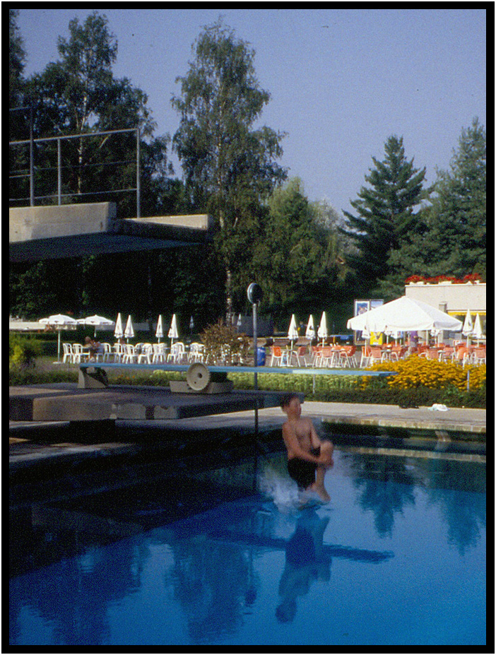 Pool exclusively for diving (2017) and Ryan using it (1991), Marzilibad, Bern, Switzerland.