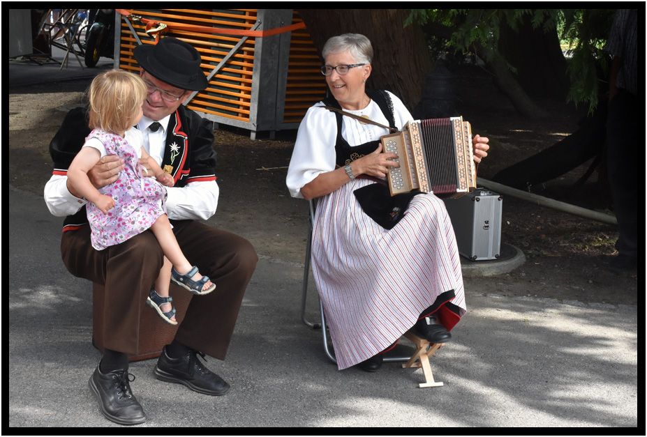 Young lady enjoys the musical entertainment, Unspunnenfest, Interlaken, Switzerland, 2017.