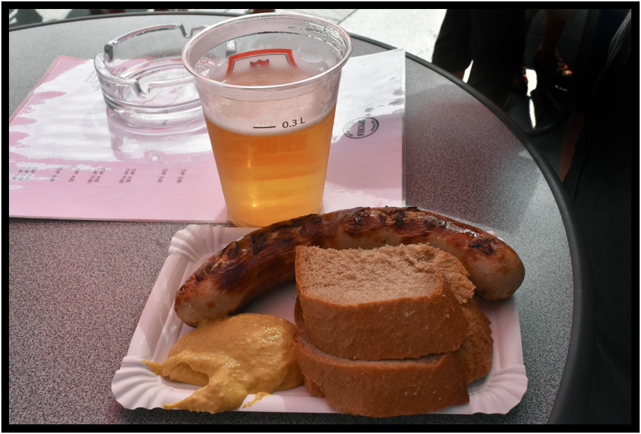 Bratwurst, ready for eating, Unspunnenfest, Interlaken, Switzerland, 2017.