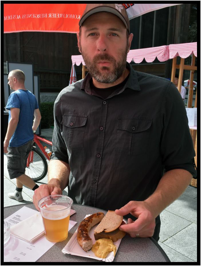 Lynn enjoys her beer and Wyatt his bratwurst, Unspunnenfest, Interlaken, Switzerland, 2017.