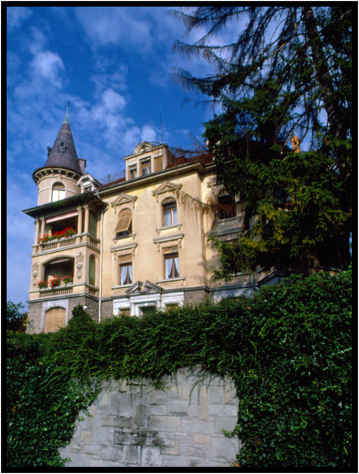 Beautiful old architecture on the hill above Lake Lucerne, Lucerne, Switzerland, 1978.
