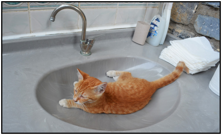 Cat staying cool in the men's room, Ephesus, Turkey, 2013.