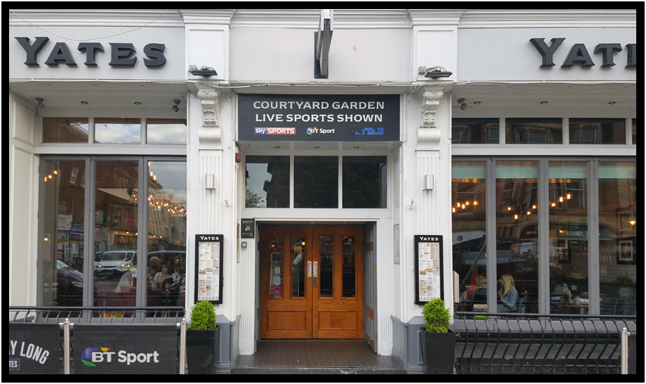 Exterior of Yates, Preston, England, United Kingdom, 2019.