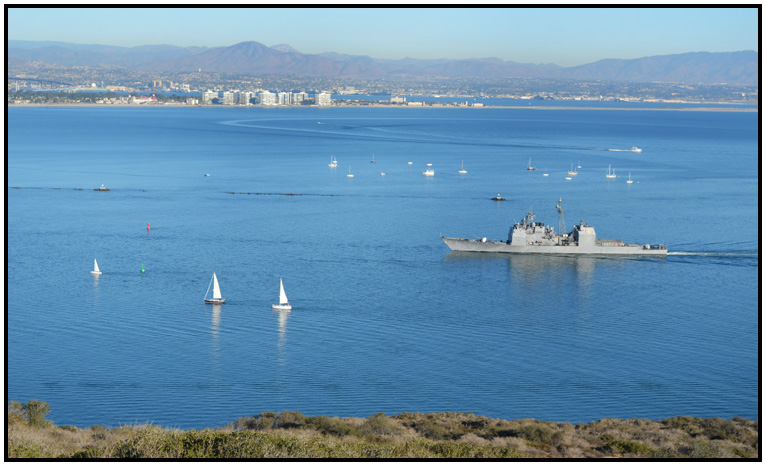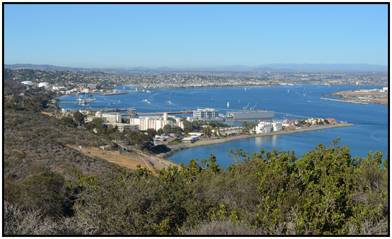 View looking toward Coronado Island and San Diego beyond from Cabrillo National Monument, Point Loma, San Diego, California, 2014.
