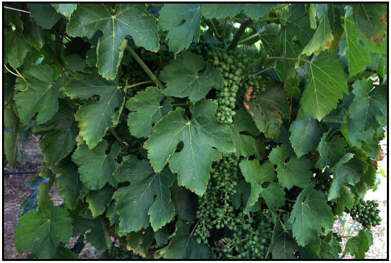 Young grapes on the vine, Quivira Winery, between Healdsburg and Geyserville, California, 2014.