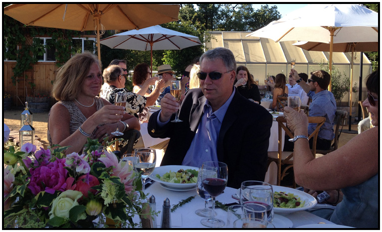 The groom's father toasting the couple, Quivira Winery, between Healdsburg and Geyserville, California, 2014.
