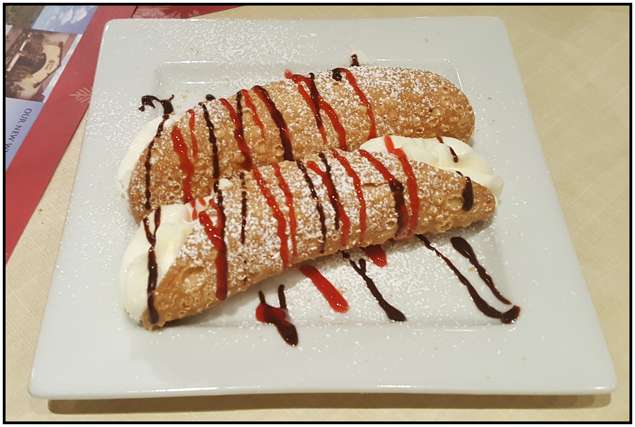 Cannoli dessert, San Antonio Winery, Los Angeles, California, USA, 2017.