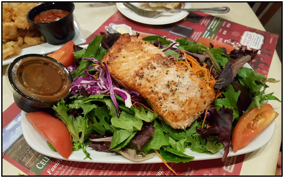 Others in the party ordered a grilled salmon salad and fettuccine.