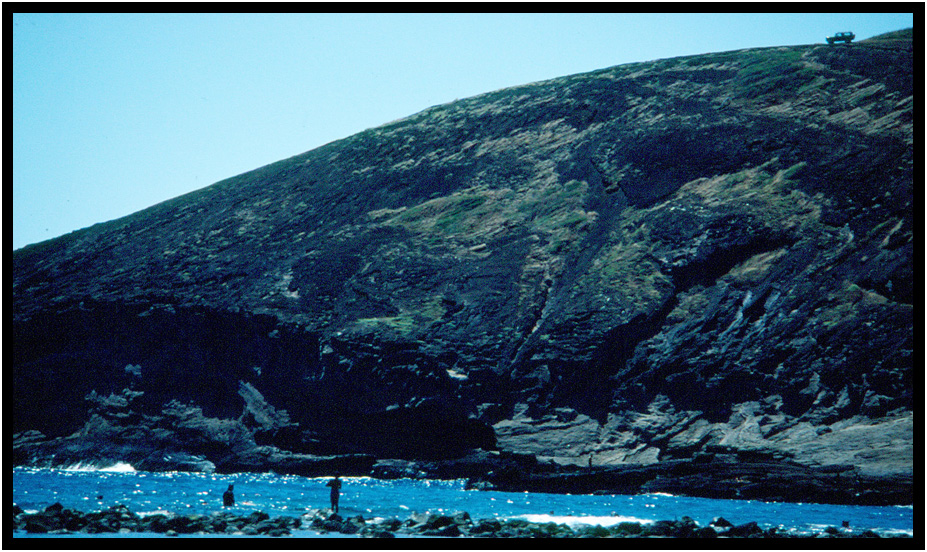Looking down at Hanauma Bay, Oahu, Hawaii, 1983.