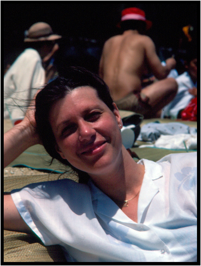Lynn enjoying the sun, Hanauma Bay, Oahu, Hawaii, 1983.