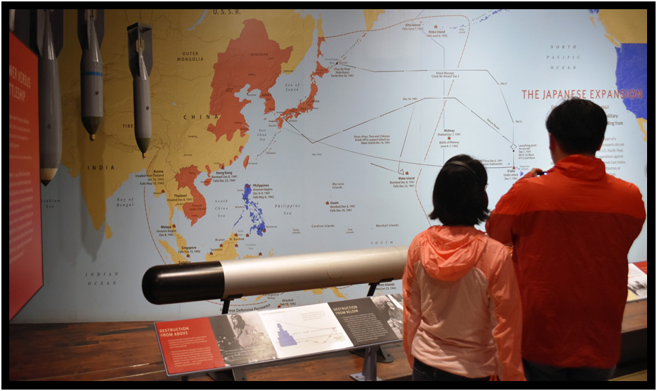 This exhibit illustrates Japanese expansion, World War II Valor in the Pacific National Monument, Pearl Harbor, Oahu, Hawaii, USA, 2019.