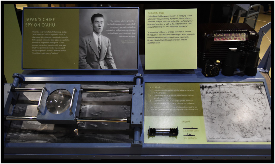 This exhibit is about Japan's spy in Oahu, World War II Valor in the Pacific National Monument, Pearl Harbor, Oahu, Hawaii, USA, 2019.
