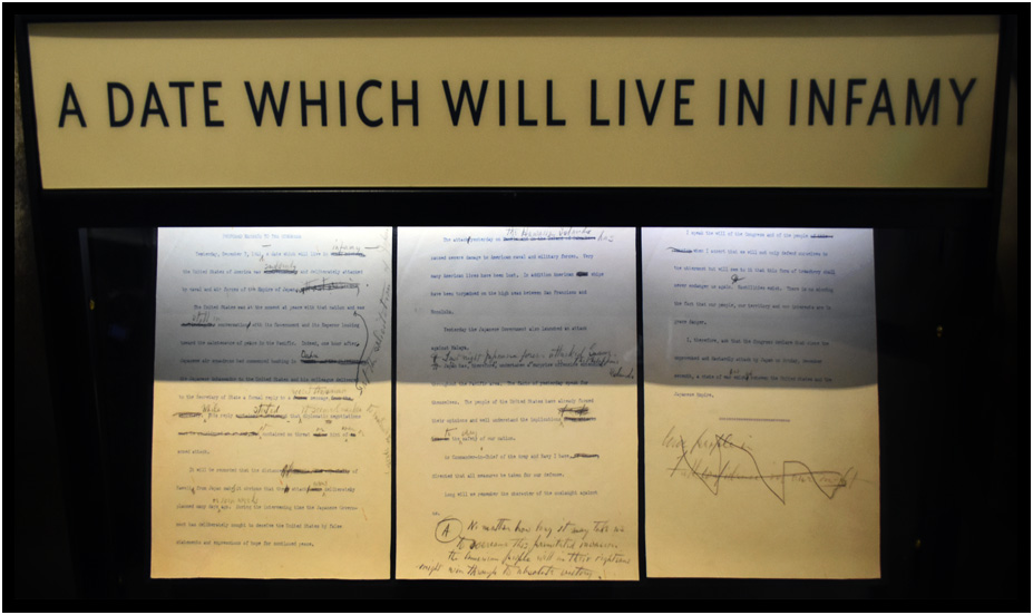 The notes for Roosevelt's "day that will live in infamy" speach, World War II Valor in the Pacific National Monument, Pearl Harbor, Oahu, Hawaii, USA, 2019.