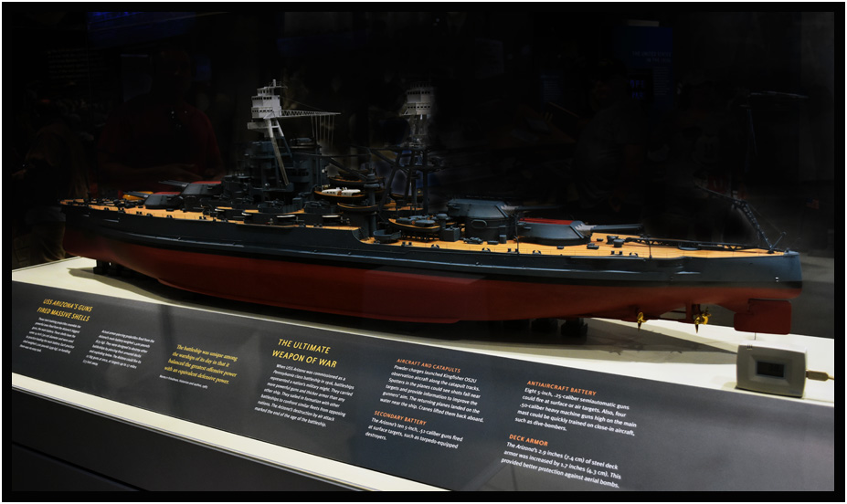 Model of the USS Arizona, World War II Valor in the Pacific National Monument, Pearl Harbor, Oahu, Hawaii, USA, 2019.