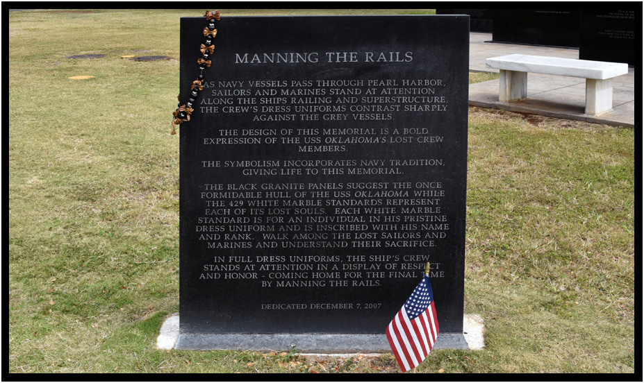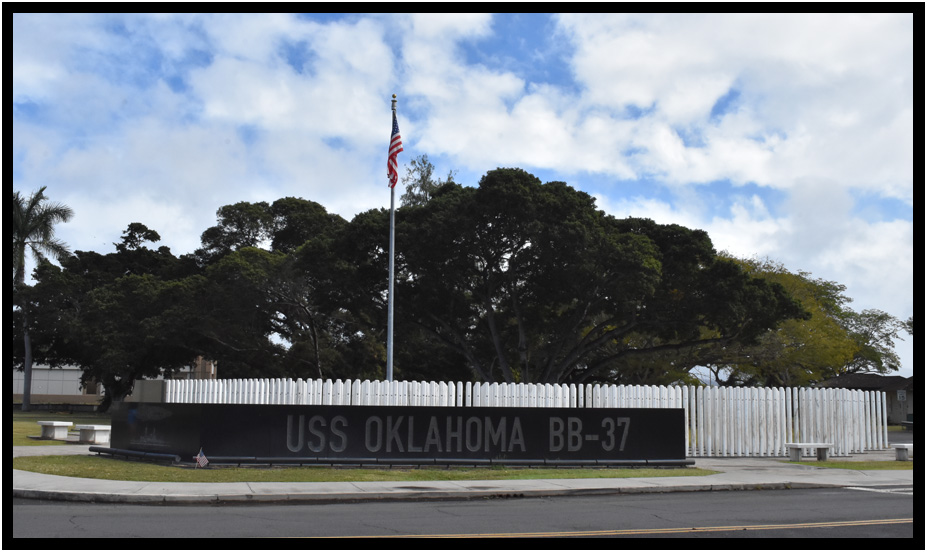 The USS Oklahoma Memorial is in Pearl Harbor next to the USS Missouri Memorial.